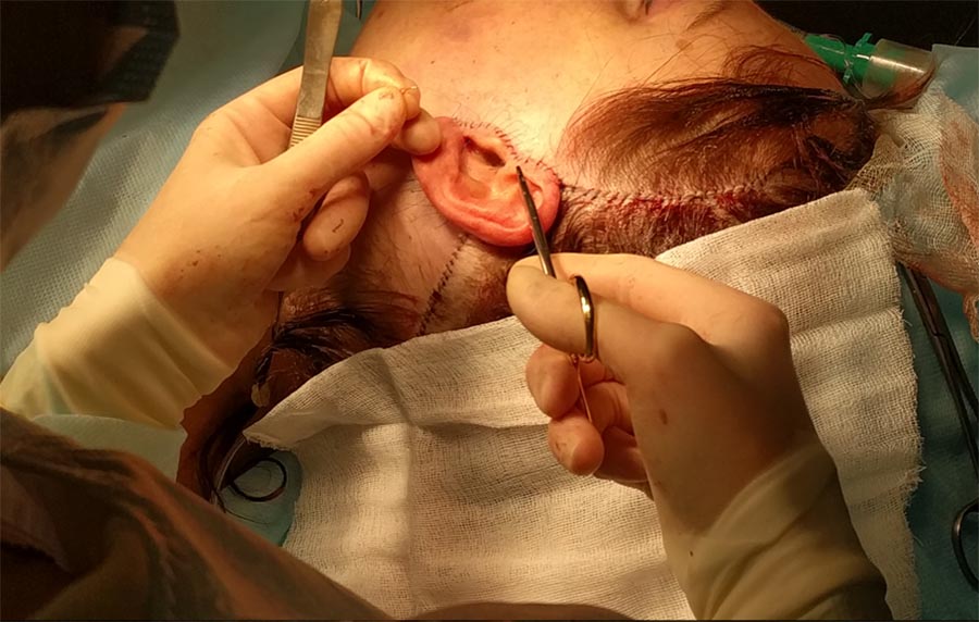 Естественно, мы стремимся получше спрятать швы. Везде где это возможно, разрезы аккуратно скрываются — за ушами, в волосистой части головы, под подбородком. И наконец, особое внимание требуется уделять не только наложению самих швов, но и грамотной работе с ними после операции.